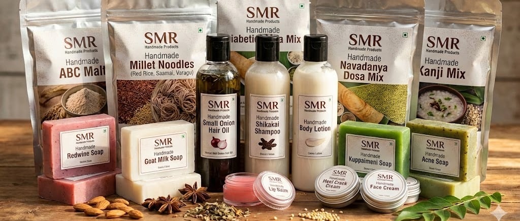 At smr handmade products, we blend tradition and nature to bring you skin, hair, and food essentials crafted with love and care.
